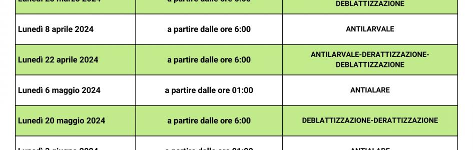 Per le date indicate nel calendario di INTERVENTI DI SANIFICAZIONE AMBIENTALE 2024, si invita tutta la cittadinanza del Comune di Trepuzzi 𝗮 𝗰𝗵𝗶𝘂𝗱𝗲𝗿𝗲 𝗽𝗼𝗿𝘁𝗲 𝗲 𝗳𝗶𝗻𝗲𝘀𝘁𝗿𝗲, 𝗮 𝗻𝗼𝗻 𝗰𝗶𝗿𝗰𝗼𝗹𝗮𝗿𝗲/𝘀𝗼𝘀𝘁𝗮𝗿𝗲 𝗻𝗲𝗹𝗹𝗲 𝗮𝗿𝗲𝗲 𝗶𝗻𝘁𝗲𝗿𝗲𝘀𝘀𝗮𝘁𝗲 𝗱𝗮𝗴𝗹𝗶 𝗶𝗻𝘁𝗲𝗿𝘃𝗲𝗻𝘁𝗶, 𝗮 𝗻𝗼𝗻 𝗲𝘀𝗽𝗼𝗿𝗿𝗲 𝗯𝗶𝗮𝗻𝗰𝗵𝗲𝗿𝗶𝗮, 𝗮 𝗰𝗼𝗽𝗿𝗶𝗿𝗲 𝗴𝗶𝗼𝗰𝗵𝗶 𝗽𝗲𝗿 𝗯𝗮𝗺𝗯𝗶𝗻𝗶 𝗲 𝗮 𝘁𝗲𝗻𝗲𝗿𝗲 𝗮𝗹𝗹'𝗶𝗻𝘁𝗲𝗿𝗻𝗼 𝗮𝗻𝗶𝗺𝗮𝗹𝗶 𝗱𝗼𝗺𝗲𝘀𝘁𝗶𝗰𝗶.